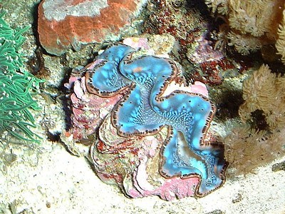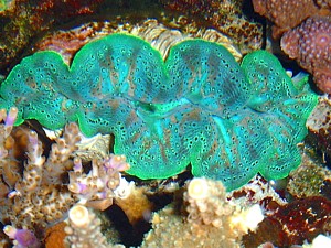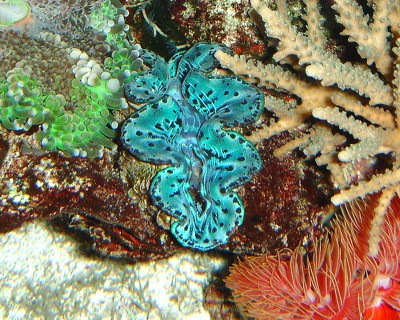 Tridacna maxima and Tridacna crocea mixed clam bed.