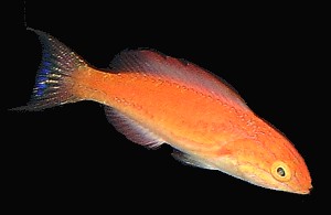 | Johnson's Fairy Wrasse (Cirrhilabrus johnsoni) Johnson's Fairy Wrasse is amongst the rarest fairy wrasses imported. This species is endemic Kwajalein atoll of the Marshall Island Chain - a restricted island to collectors and recreational divers. The only way these fishes are exported are via carry-on baggage. C.johnsoni is one of the smallest fairy wrasses (2.5" max size), found amongst thick groves of Hamelida sp. |
